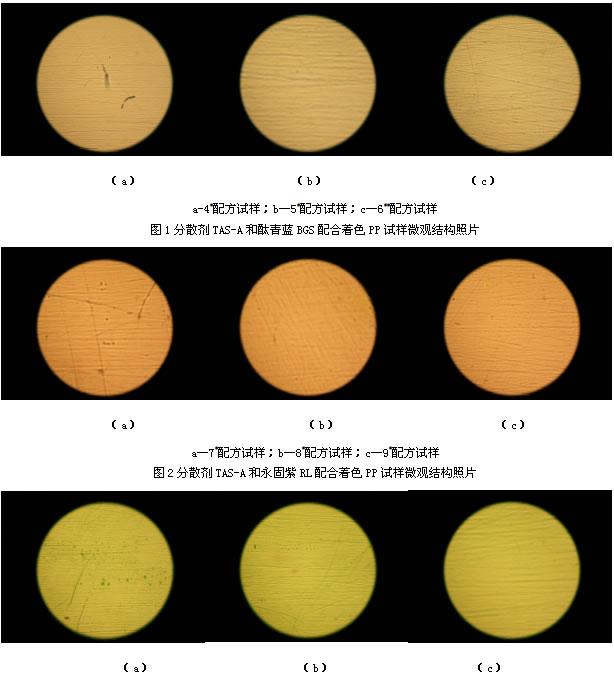 2.3 分散剂TAS-A对上述几种颜料在塑料PP着色中的影响