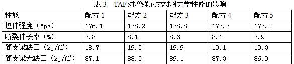 (1) 加入0.5-0.7%组分的TAF对PA66力学性能具有补强作用。