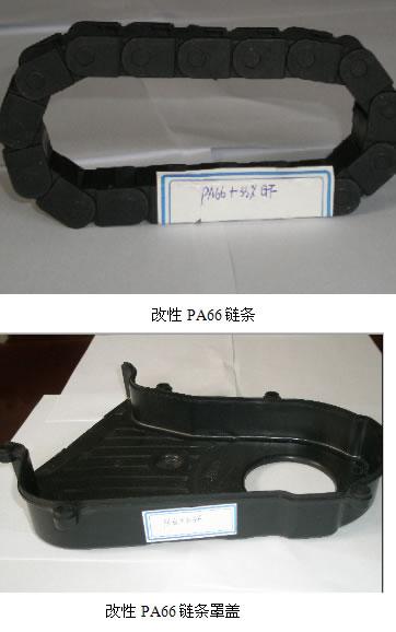 由于PA66改性后优异的综合性能,使其在很多领域得到广泛的应用。尽管尼龙相对于多种工程塑料有较好的流动性,但是在实际应用过程中,尼龙66的流动性、玻纤增强后的成型性等大大制约了它的应用空间。在后续加工应用过程中,TAF结构中酰胺基结构的存在加大了助剂与聚酰胺的相容性。产品在挤出与注塑过程中,极少有析出现象。在制件要求高光泽,高致密的尼龙复合材料中,TAF有极大的推广价值。比如在尼龙齿轮,尼龙6棒材,尼龙载体色母粒都有提高光泽,加强致密性的效果。TAF能大幅度提高复合材料的流动性,使其能够在薄壁制件、不规则壁厚制件中得以推广,如PA66链条、PA66链条罩盖、PA66汽车进气系统、PA6汽车门把手等。